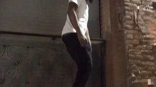 Schwarzer Mann beugt sich über ein vollbusiges Mädchen namens Cameron Skye und fickt sie auf der Straße
